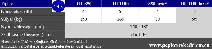 150 literes (HL850) és 220 literes (HL1100) tartály