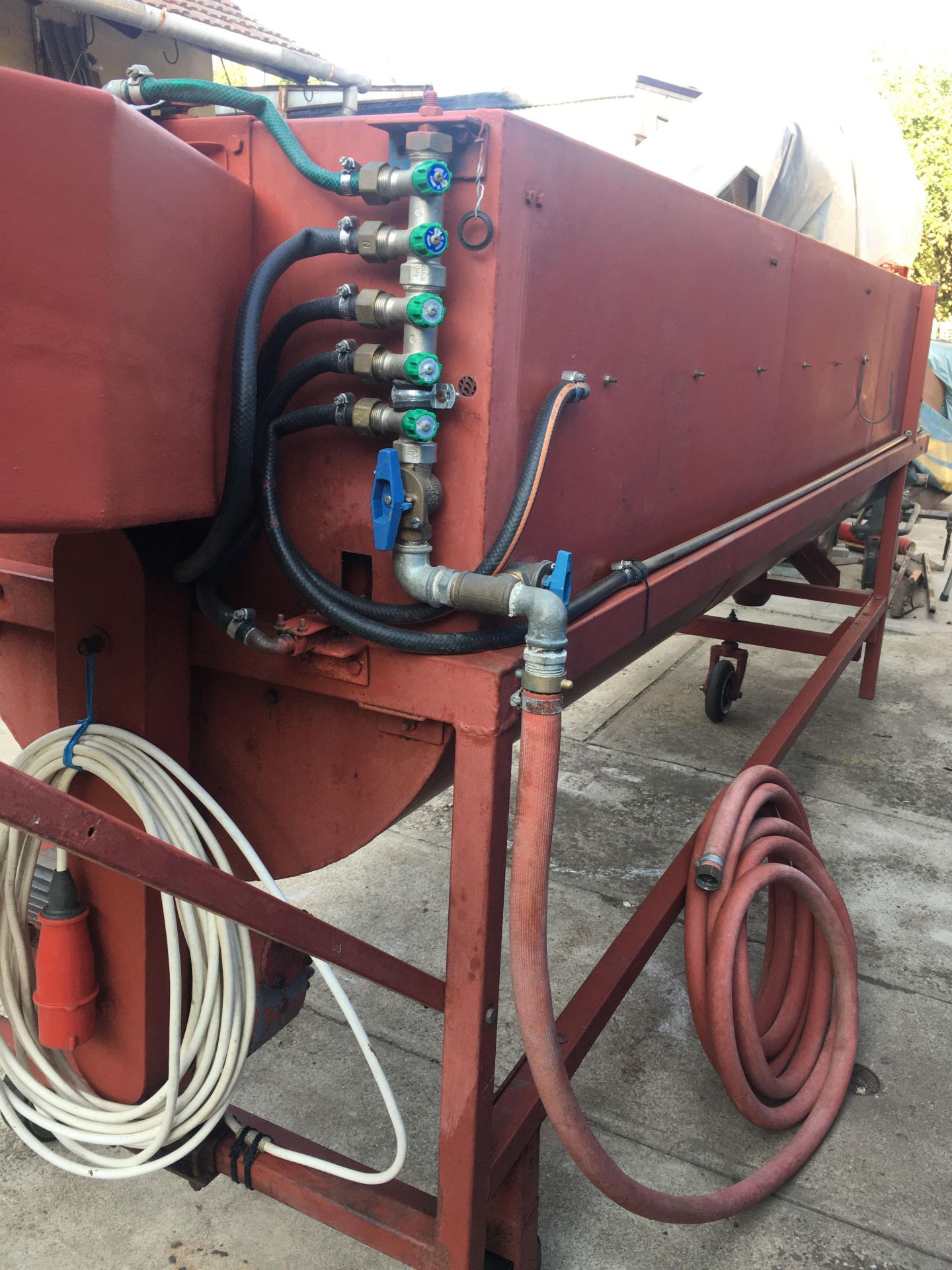 Különlegességei: víztakarékos üzemelés, az egységek szabályozhatósága (18 db permetező fúvóka), a dob 2/3 részében a dobból kifelé mossa a szennyeződést a jobb hatásfok érdekében. A magasított külső burkolat és a fólia takarás biztosítja a vízpermet mentes üzemelést.