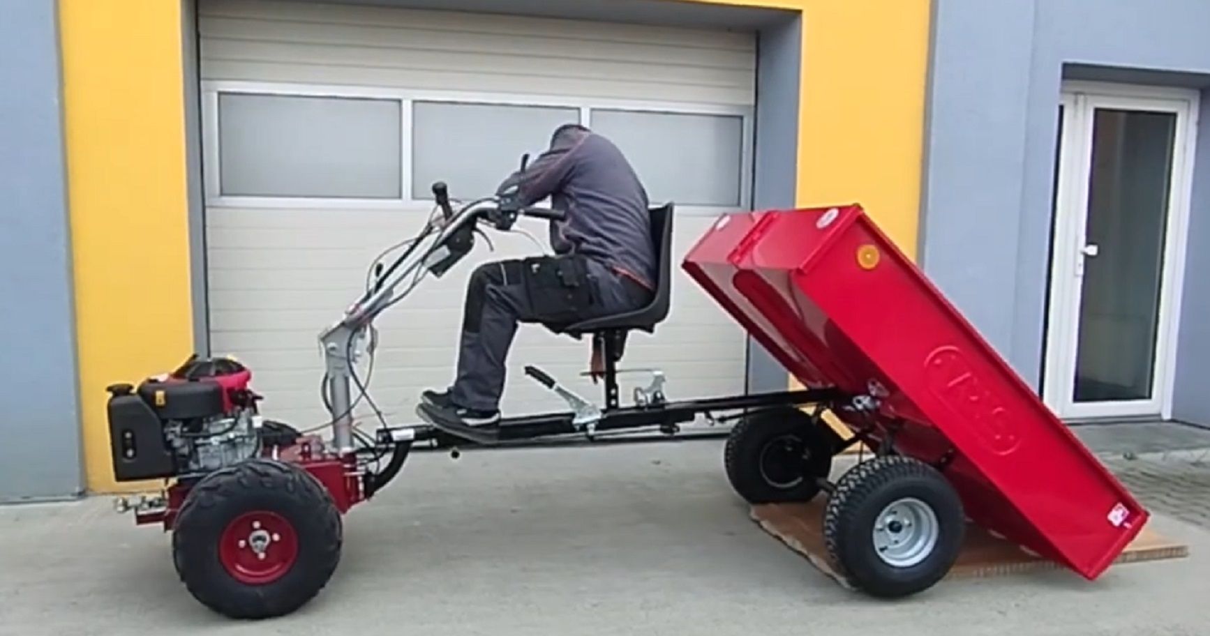Kiemelkedő minőségű és az egyik legnagyobb teljesítményű hidrosztatikus hajtású egytengelyes traktor a magyar piacon, 13 le-s briggs&stratton ipari benzinmotorral..