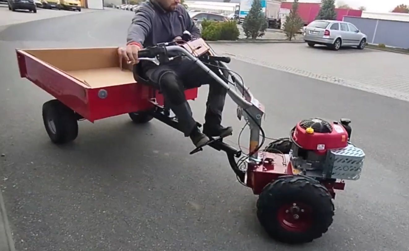 Kifejezetten igényes kivitelű, szép utánfutó mely bármely egytengelyes traktorhoz vagy rotációs kapához kapcsolható.