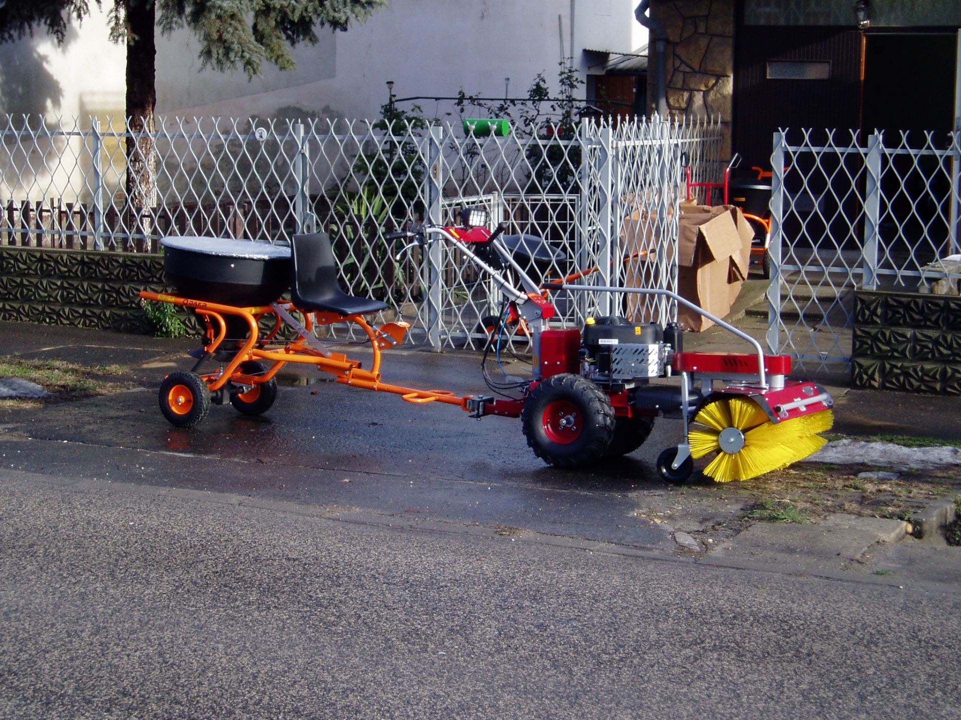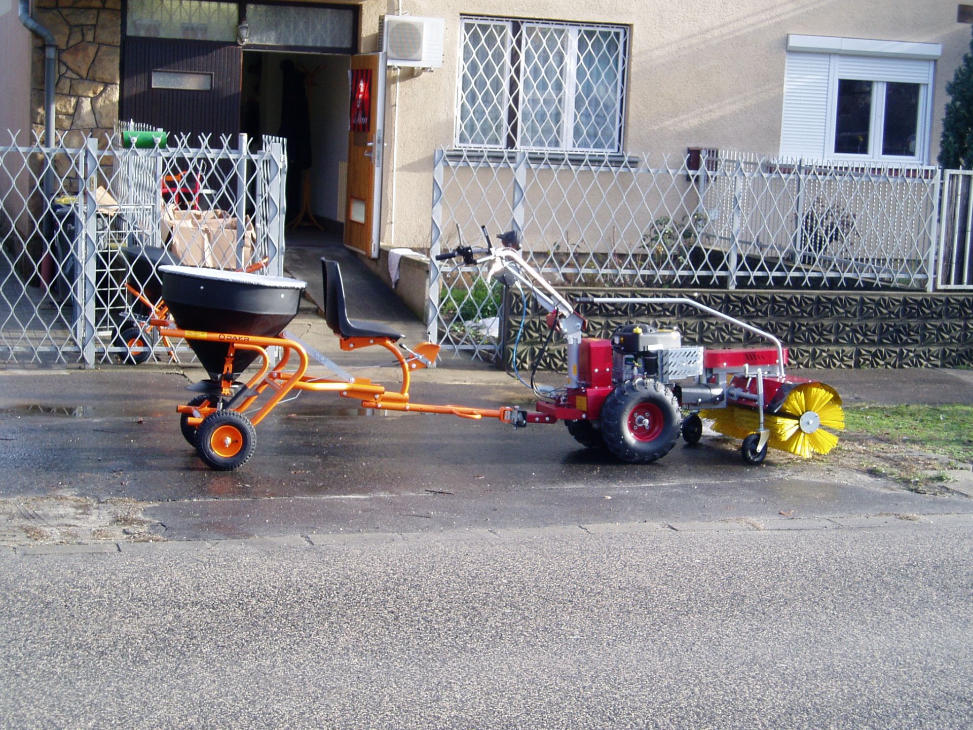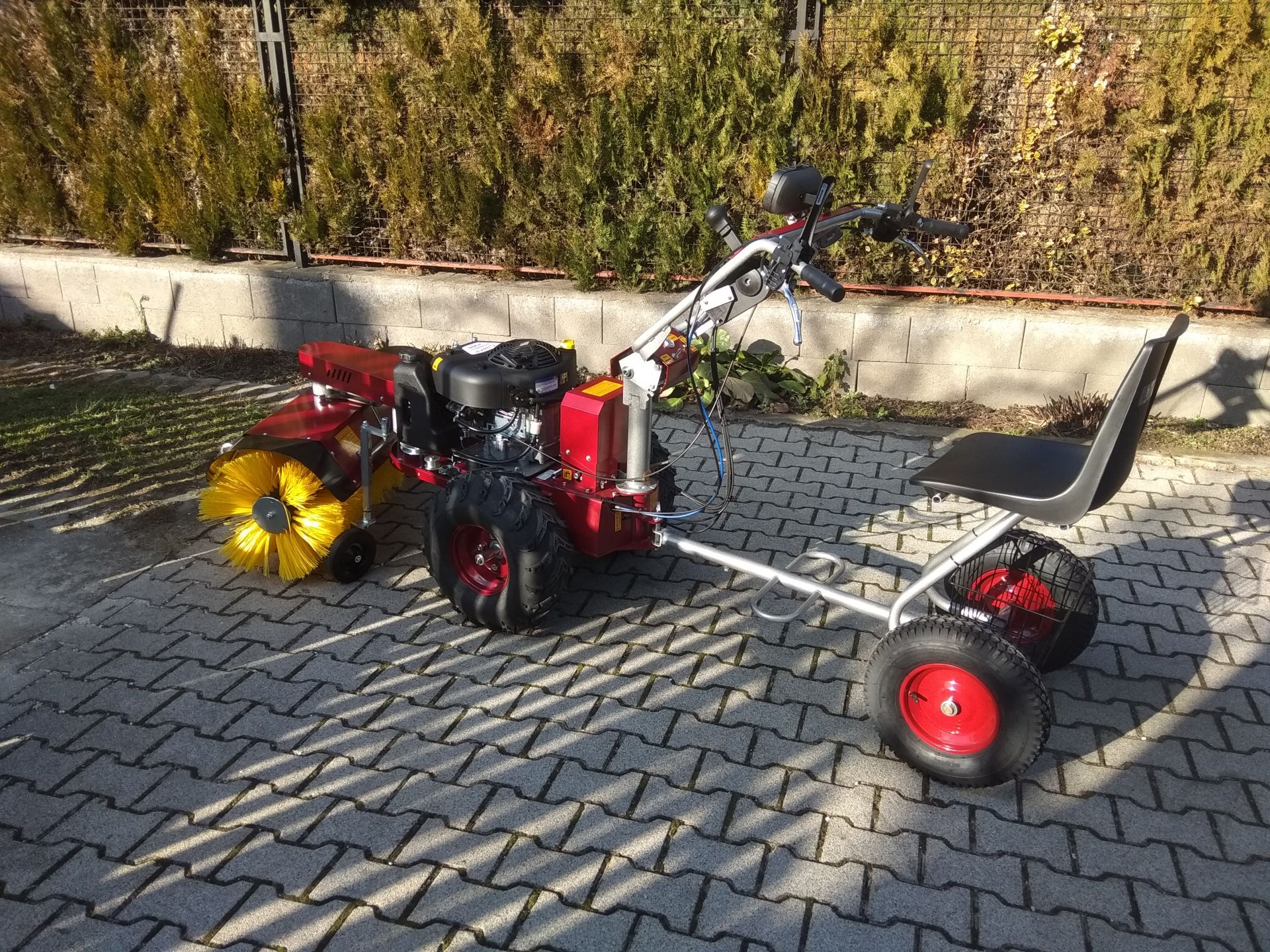 Teljes téli-nyári felszereltséggel kiegészíthető egytengelyű kommunális traktor, mely akár önkormányzatok, akár gazdaságok, akár kommunális szolgáltatók területén felmerülő zöldterület-karbantartási feladatokra kiválóan használható. Egy kedvező árú multifunkcionális gép, melynek kihasználhatósága a négykerekű traktorokéval vetekszik azok árának töredékéért. Az általunk forgalmazott gépek újak, 1 év garanciával. A gép felszerelhető különböző fűnyíró, gazvágó, bozótirtó szerelvényekkel, seprőgéppel, hótoló lappal, só- és műtrágyaszóró adapterrel, különböző talajművelő berendezésekkel (kultivátor, kombinátos, kis eke, talajmaró, stb…), ágaprító adapterrel, utánfutóval és locsoló berendezéssel és még sok egyéb mezőgazdasági és kommunális kiegészítővel.