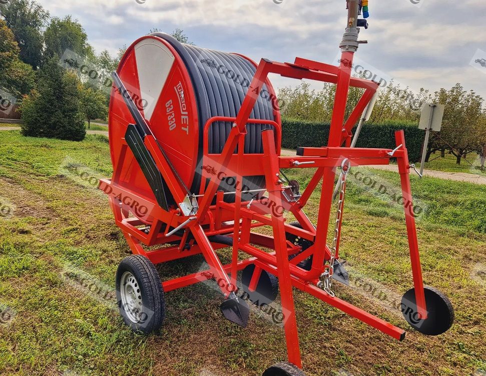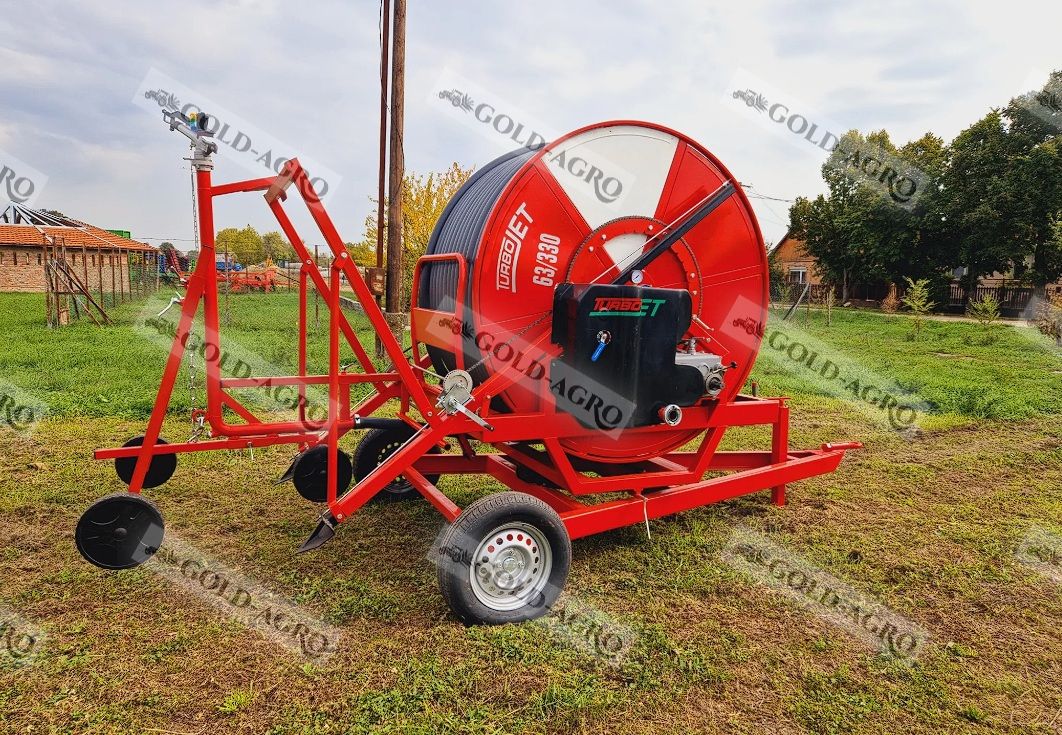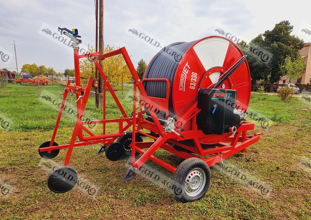 A Gold-Agro Kft. kínálatában új Turbojet öntöződob 63/300 és 63/330 típusban, forgózsámolyos kivitelben elérhető mezőgazdasági öntözőberendezésként.