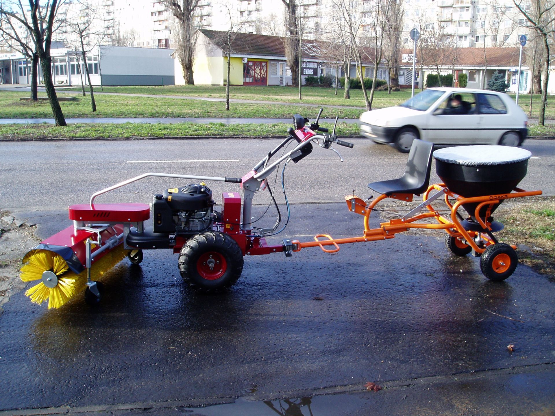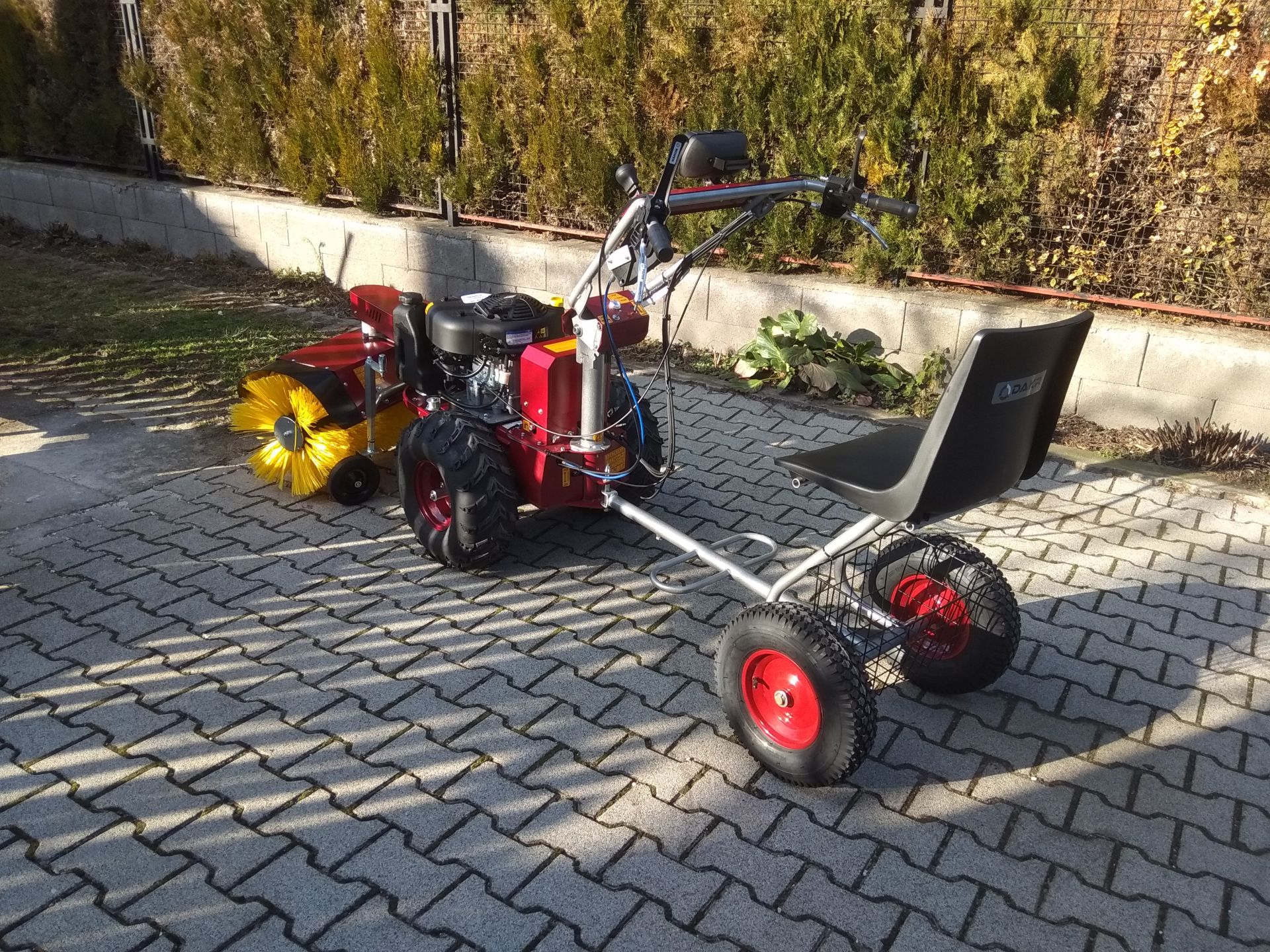 Teljes téli-nyári felszereltséggel kiegészíthető egytengelyű kommunális traktor, mely akár önkormányzatok, akár gazdaságok, akár kommunális szolgáltatók területén felmerülő zöldterület-karbantartási feladatokra kiválóan használható. Egy kedvező árú multifunkcionális gép, melynek kihasználhatósága a négykerekű traktorokéval vetekszik azok árának töredékéért. Az általunk forgalmazott gépek újak, 1 év garanciával. A gép felszerelhető különböző fűnyíró, gazvágó, bozótirtó szerelvényekkel, seprőgéppel, hótoló lappal, só- és műtrágyaszóró adapterrel, különböző talajművelő berendezésekkel (kultivátor, kombinátos, kis eke, talajmaró, stb…), ágaprító adapterrel, utánfutóval és locsoló berendezéssel és még sok egyéb mezőgazdasági és kommunális kiegészítővel.