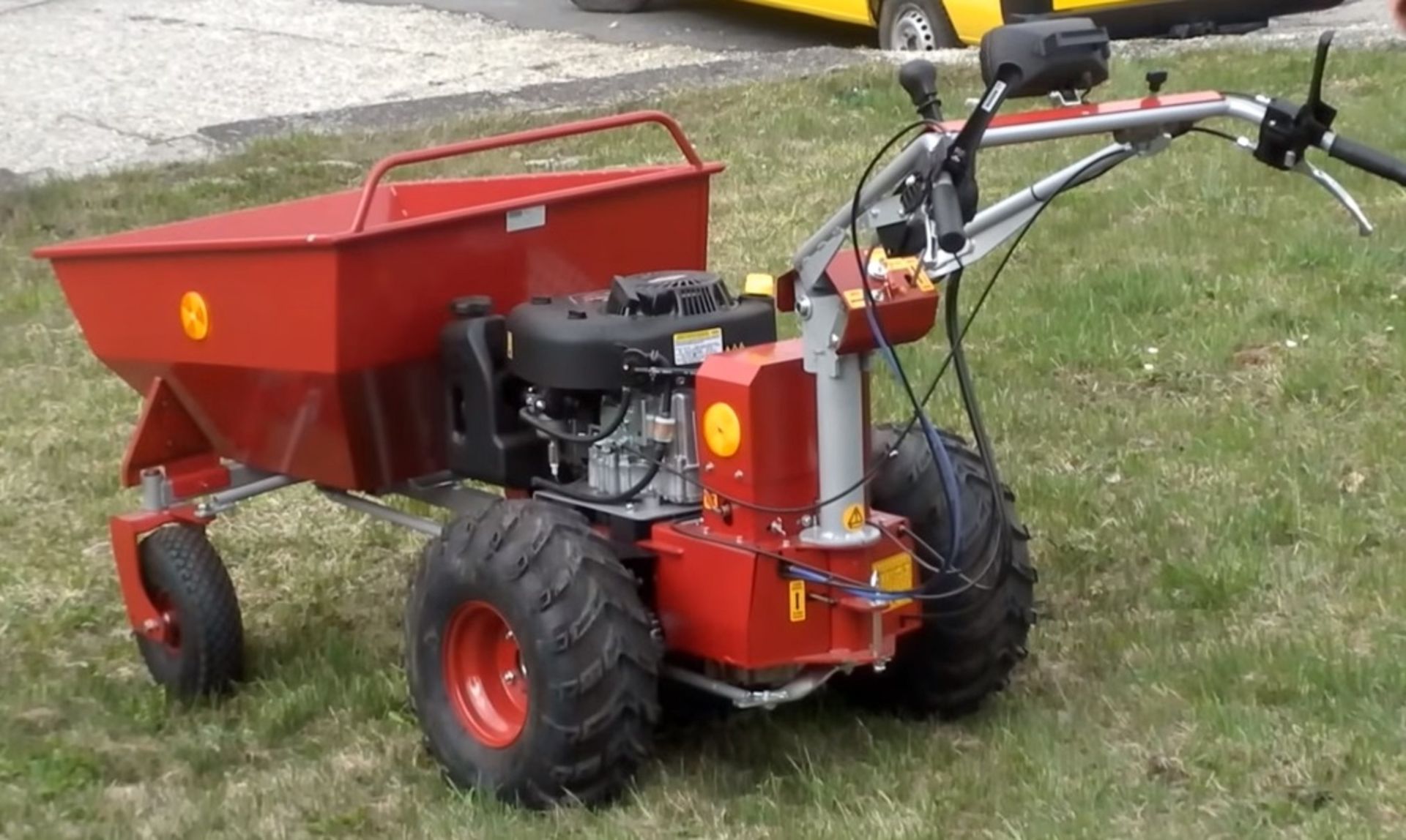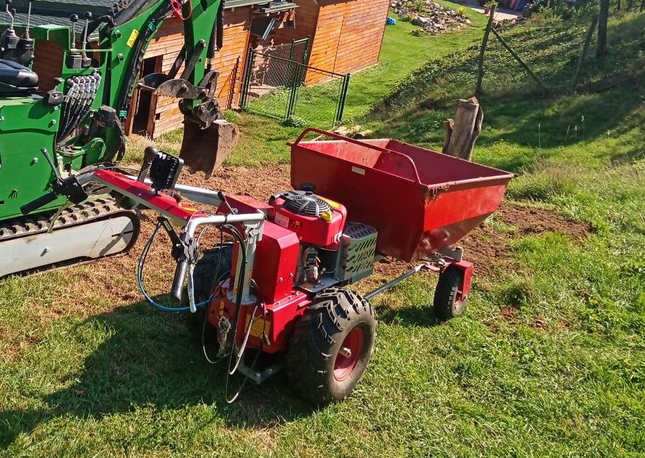 Nagy teljesítményű mini szállítójármű mely mezőgazdasági üzemekben, építkezéseken, kertészetekben igen hasznos segítőtárs tud lenni. A dömper felépítmény teherbírása 220 kg, és billenthető, szintén billenthető a 220 kg teherbírású rönkszállító felépítmény is.